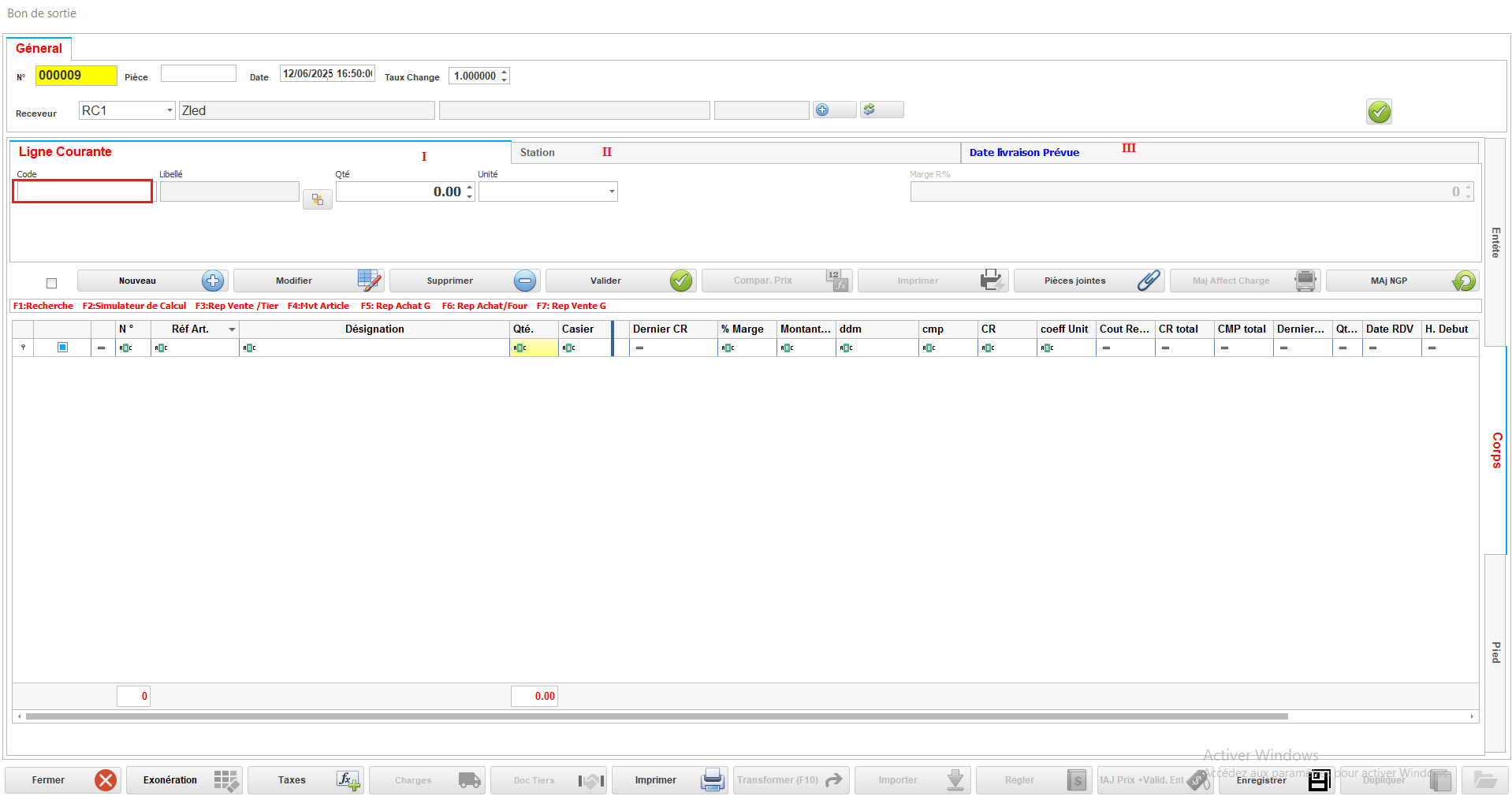 Sert à ajouter ou modifier les lignes du document de sortie : articles, quantités, unités, numéros de lot, etc.