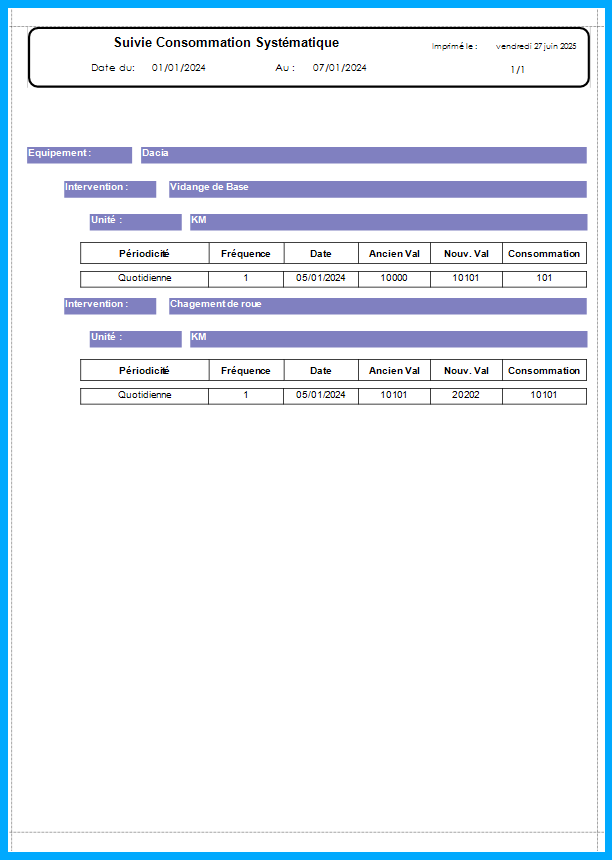 Le sous-module Consommation Systématique permet de consulter l’ensemble des consommations planifiées ou récurrentes liées à la maintenance préventive ou à l’exploitation courante des équipements. Ce type de consommation n’est pas issu d’un prélèvement ponctuel ou relevé compteur, mais d’une planification anticipée – comme la consommation régulière d’huile, de filtres, ou d’autres consommables techniques lors d’interventions systématiques.