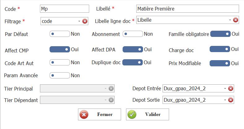 Famille obligatoire : Si activé, impose de rattacher chaque article de ce type à une famille d’articles lors de sa création.