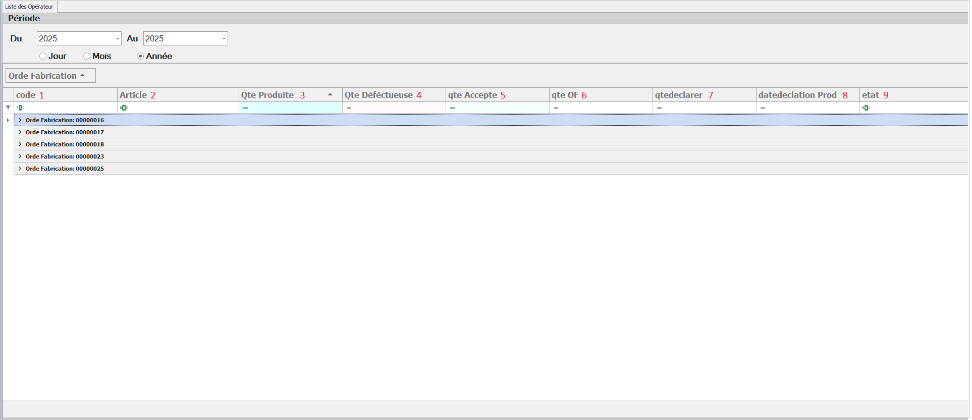 6: Quantité OF (Qte OF)