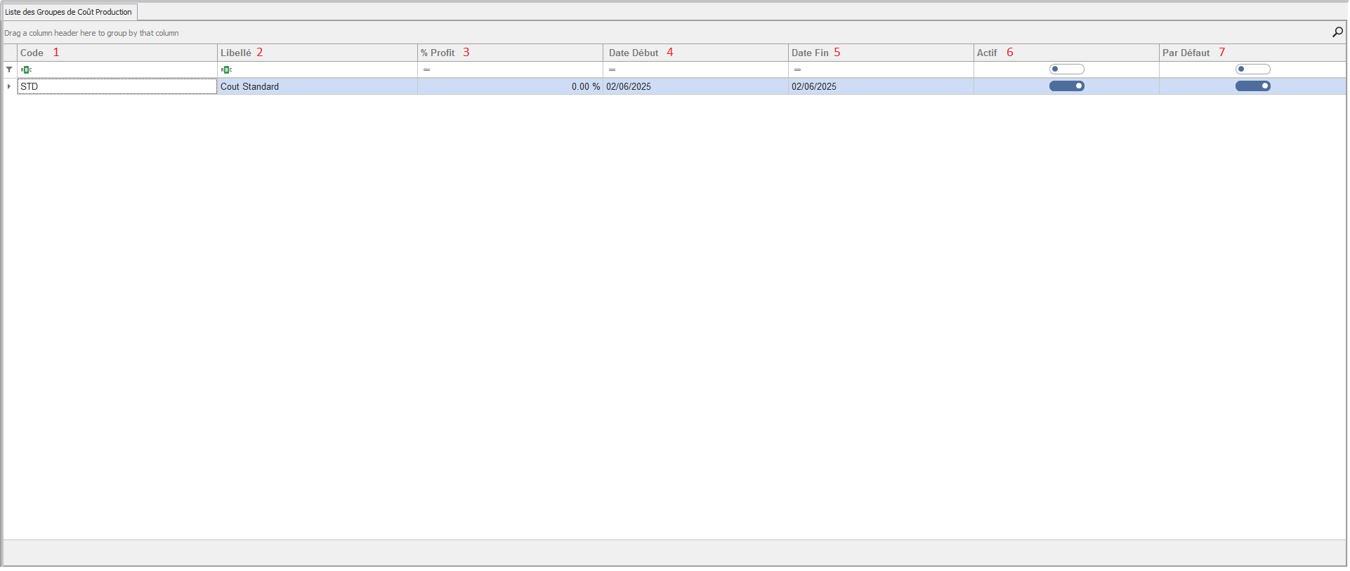 ➤ Groupe auquel est rattachée la catégorie de cout pour le calcul des coûts.