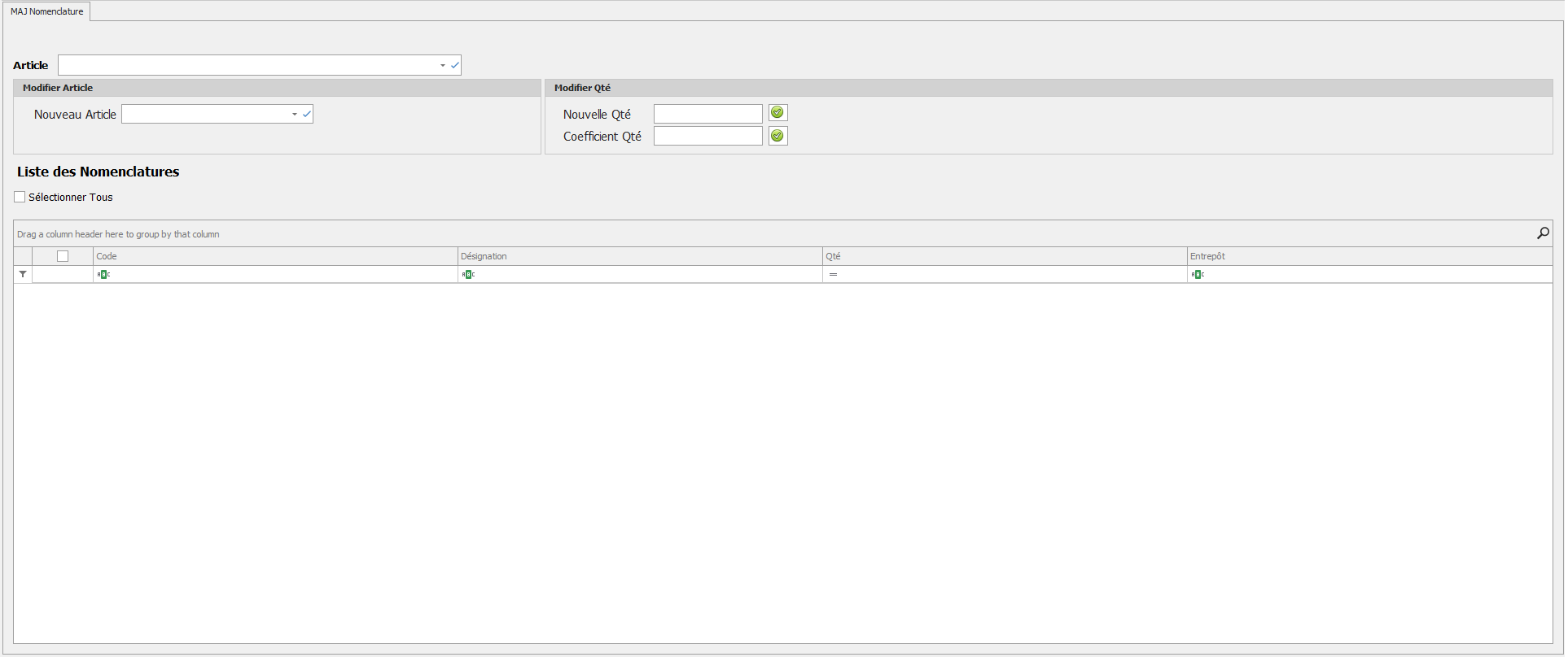 Permet de choisir un article pour lequel on souhaite consulter ou modifier la nomenclature.