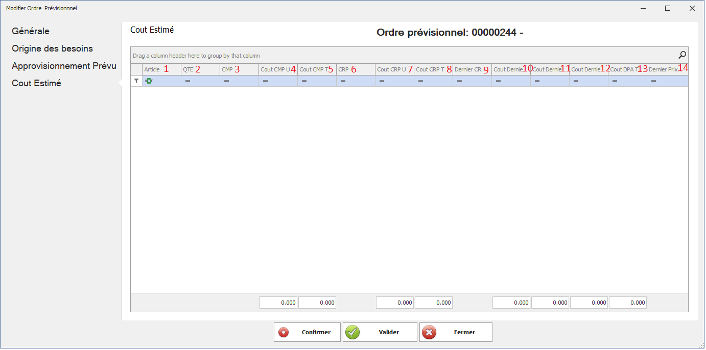 2: Code : Numéro unique identifiant l’ordre prévisionnel dans le système.