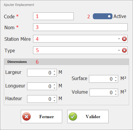 - Accéder à Gestion de Station> Paramétrage > Emplacement