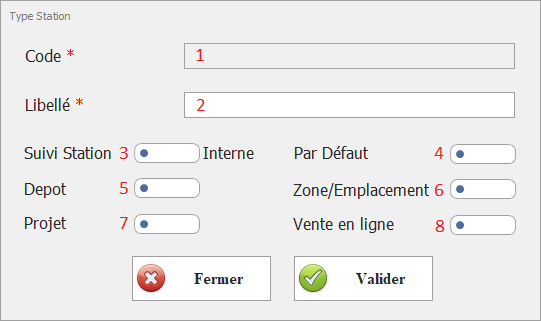 - Accéder à Gestion de Station> Paramétrage > Type Station