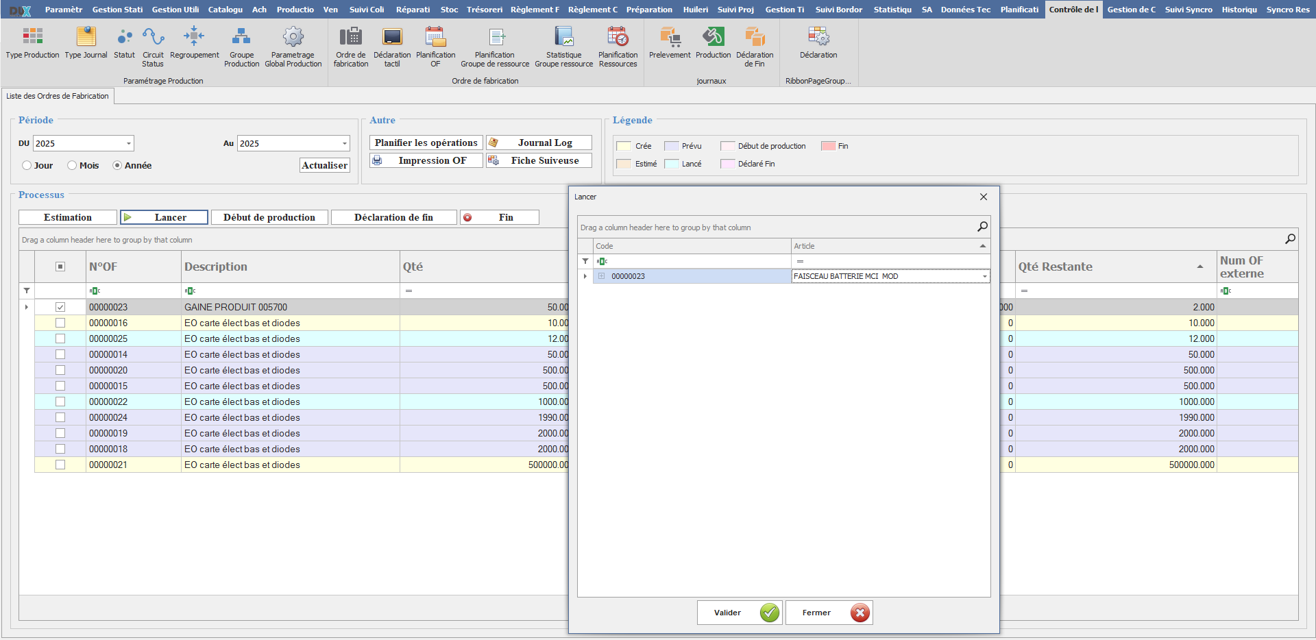 L’interface Lancer s’affiche en cliquant sur le bouton Lancer. Elle permet d’effectuer le lancement de la production.