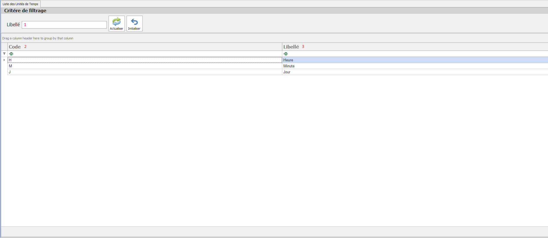 Libellé : Intitulé clair et lisible de l’unité (ex. : Heures, Minutes, Secondes).