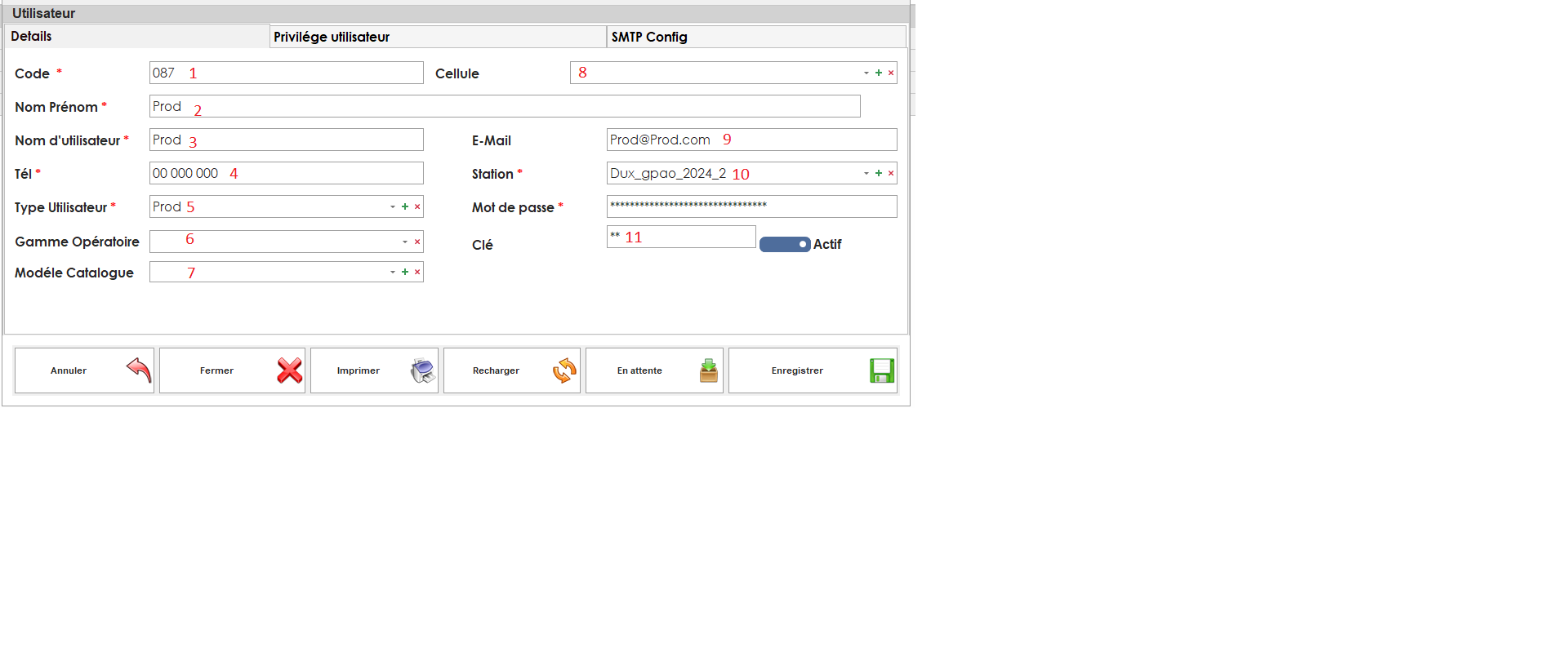 Imprimer : Permet d’imprimer la fiche utilisateur.