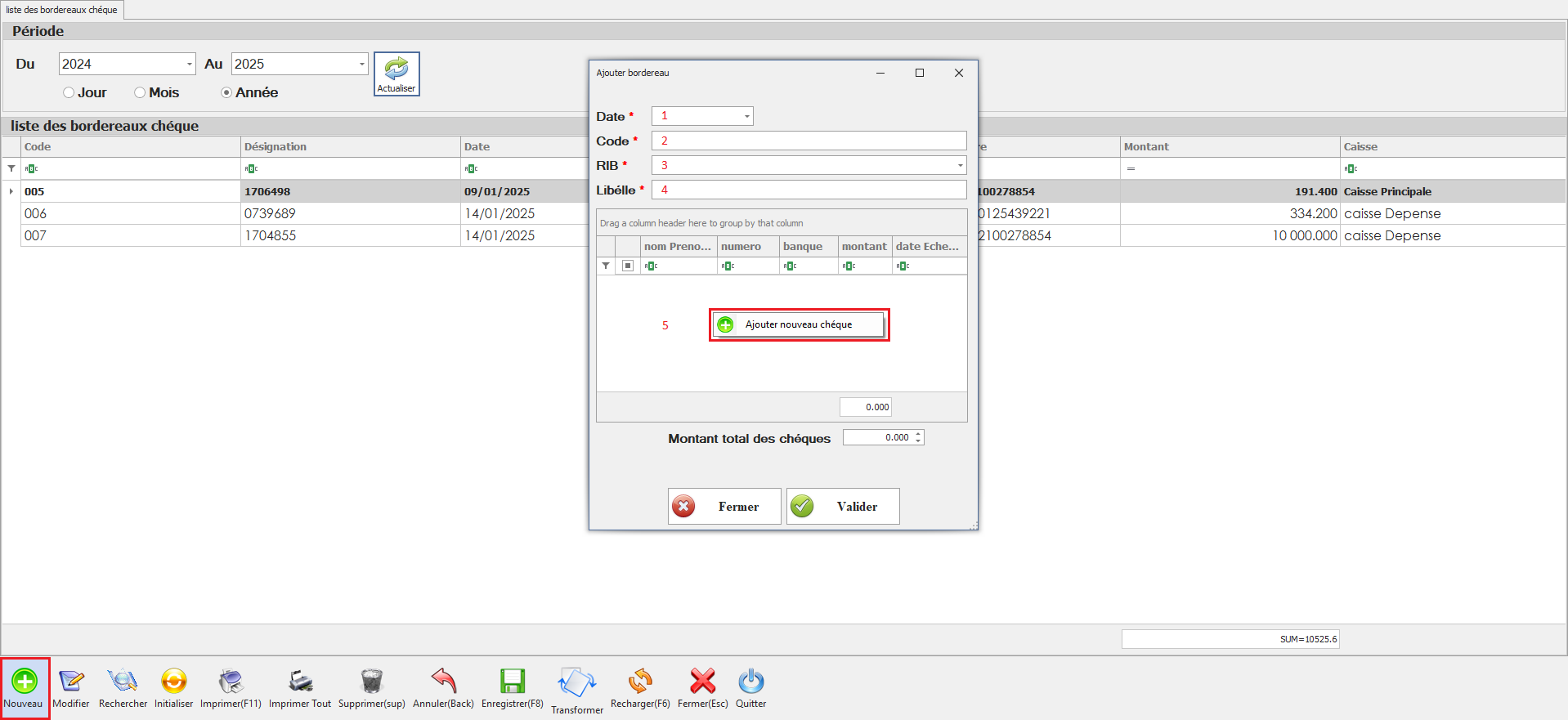 • Valider son choix pour que les chèques sélectionnés soient ajoutés automatiquement au bordereau en cours de création.