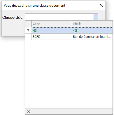 - Sélectionner la classe de document souhaitée ;