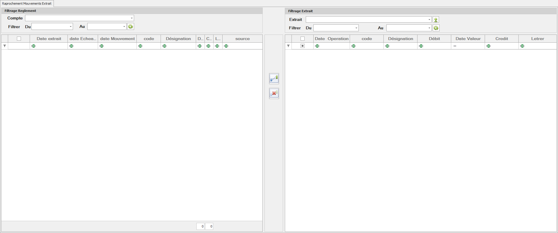 Lettrer : permet d’associer les lignes sélectionnées dans les deux tableaux, confirmant le rapprochement.