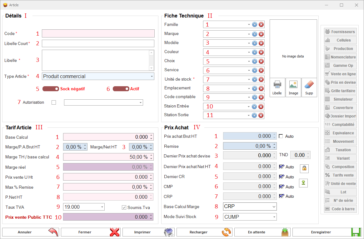 - Tarif Article : Gestion des prix de vente et des marges.