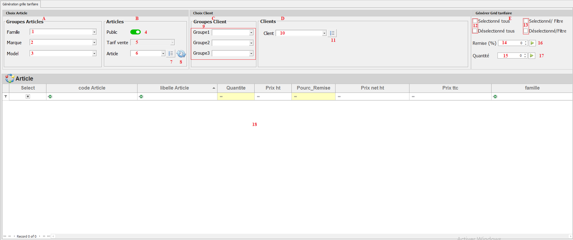 Accéder à Catalogue > Article > Modification Grille Tarifaire