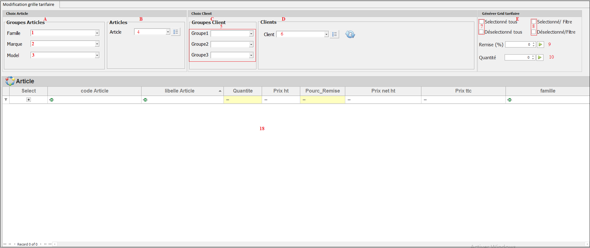 Accéder à Catalogue > Article > Modification Grille Tarifaire
