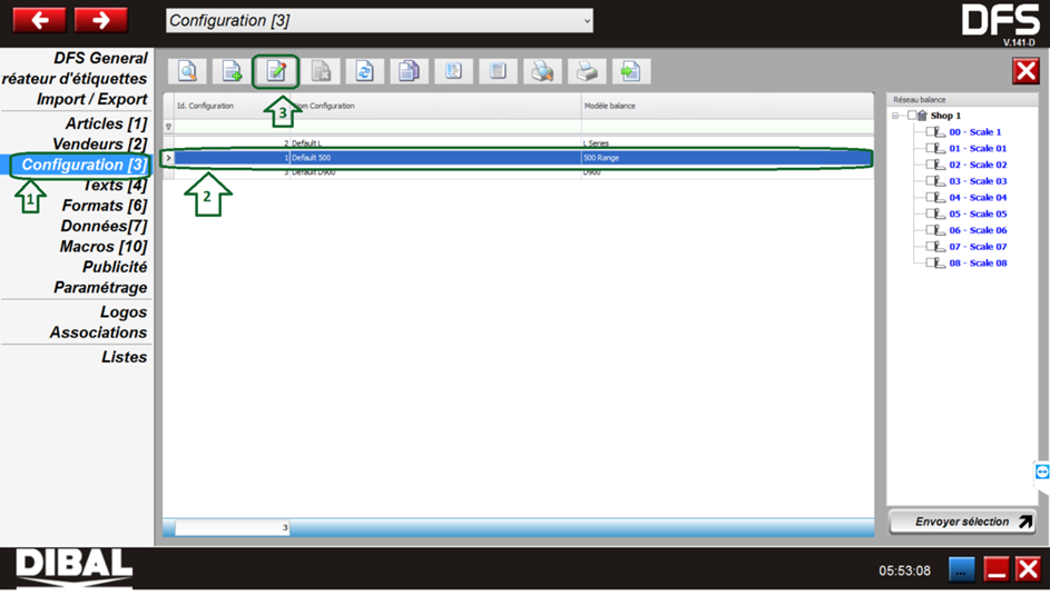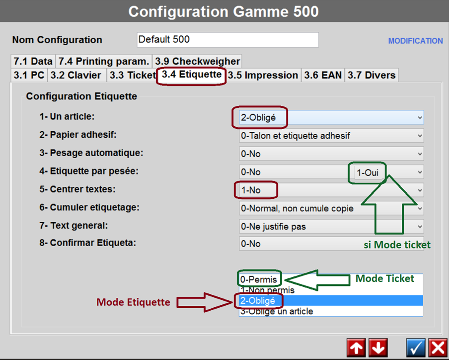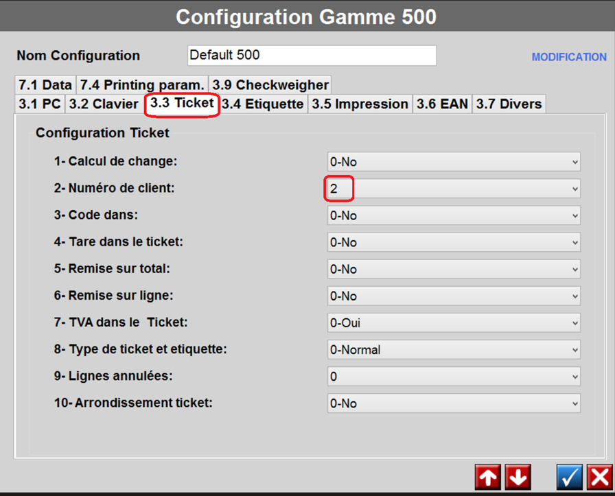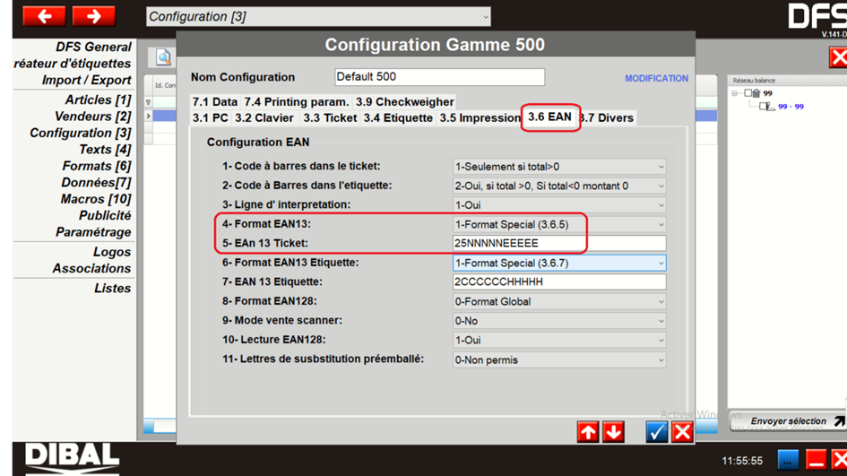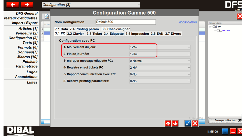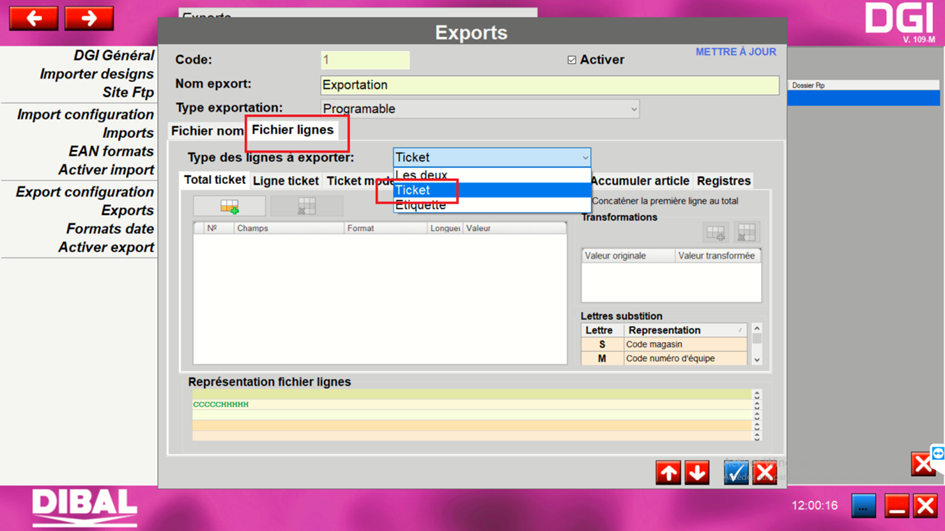 Configuration DIBAL MODE TICKET