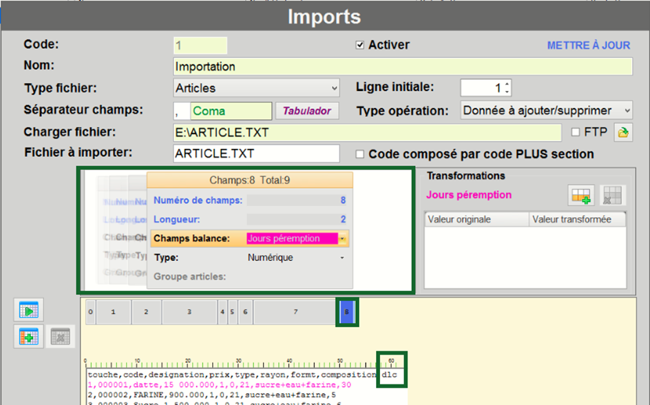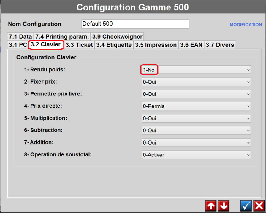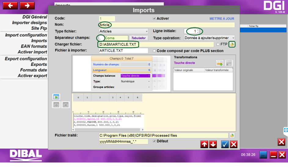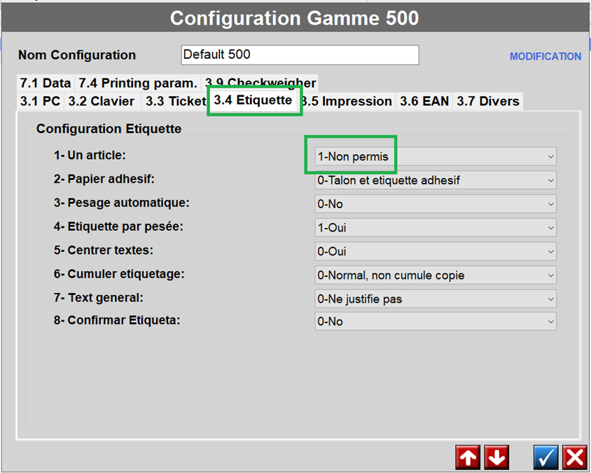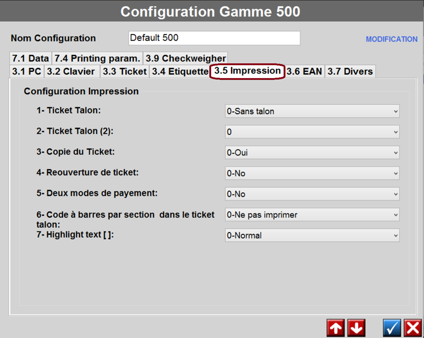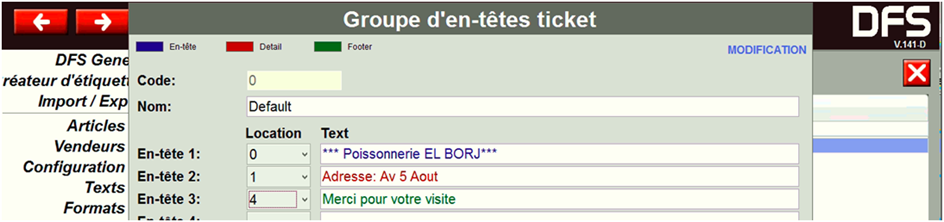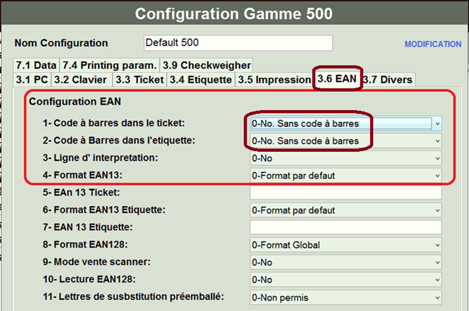 Configuration DIBAL MODE TICKET